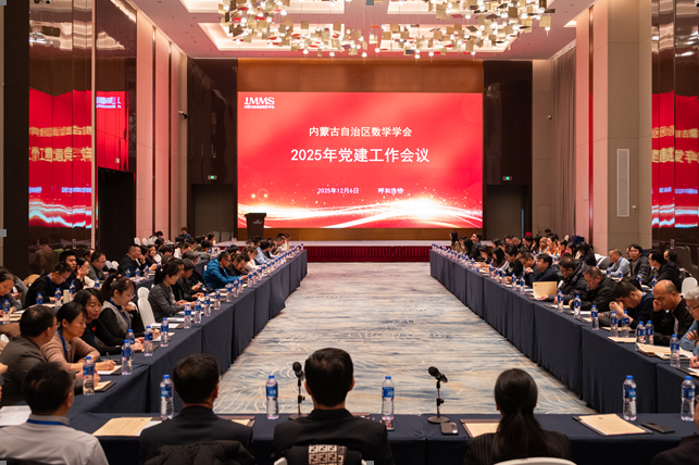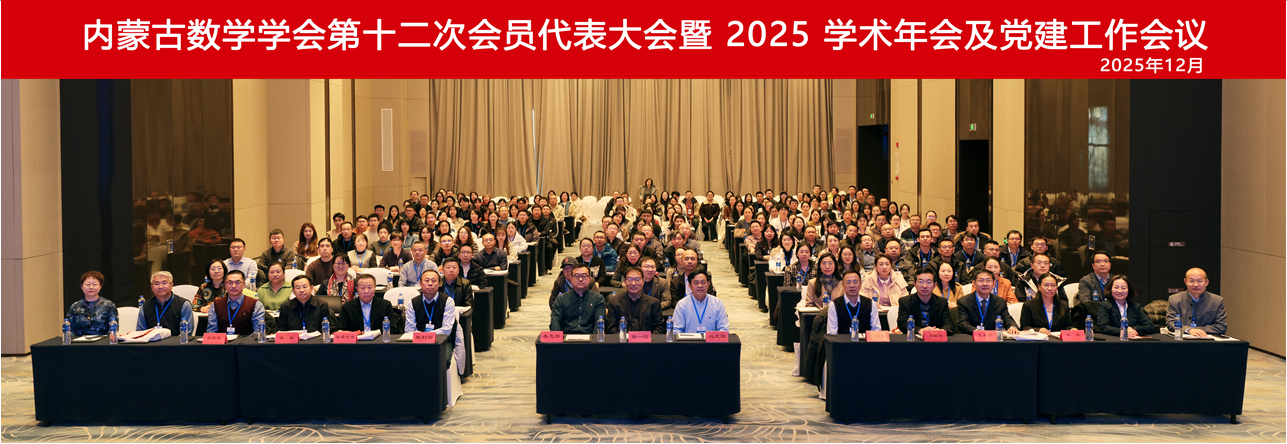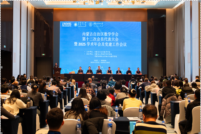 2025年12月5—8日,内蒙古自治区数学学会第十二次会员代表大会暨2025学术年会及党建工作会议在呼和浩特隆重召开。此次会议由内蒙古自治区数学学会主办,内蒙古大学数学科学学院和内蒙古财经大学统计与数学学院共同承办,内蒙古数学学会第十一届理事会理事及区内各高校、高职高专院校、中学的代表共244人参会。